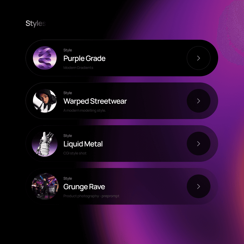 Access a library of styles already prompted for you. Taking the guesswork out of generative AI for newcomers and pros alike.